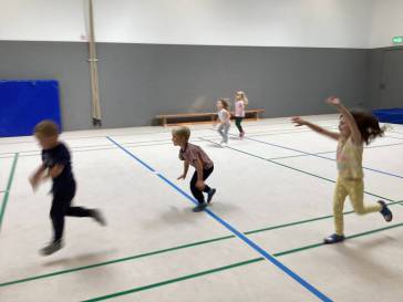 In der Regel toben sich die „Frösche“ und „Störche“ einmal pro Woche dort aus. Mit verschiedenen Spielen und Bewegungsangeboten dürfen die Kinder ihre sportlichen Fähigkeiten nach Herzenslust ausprobieren.